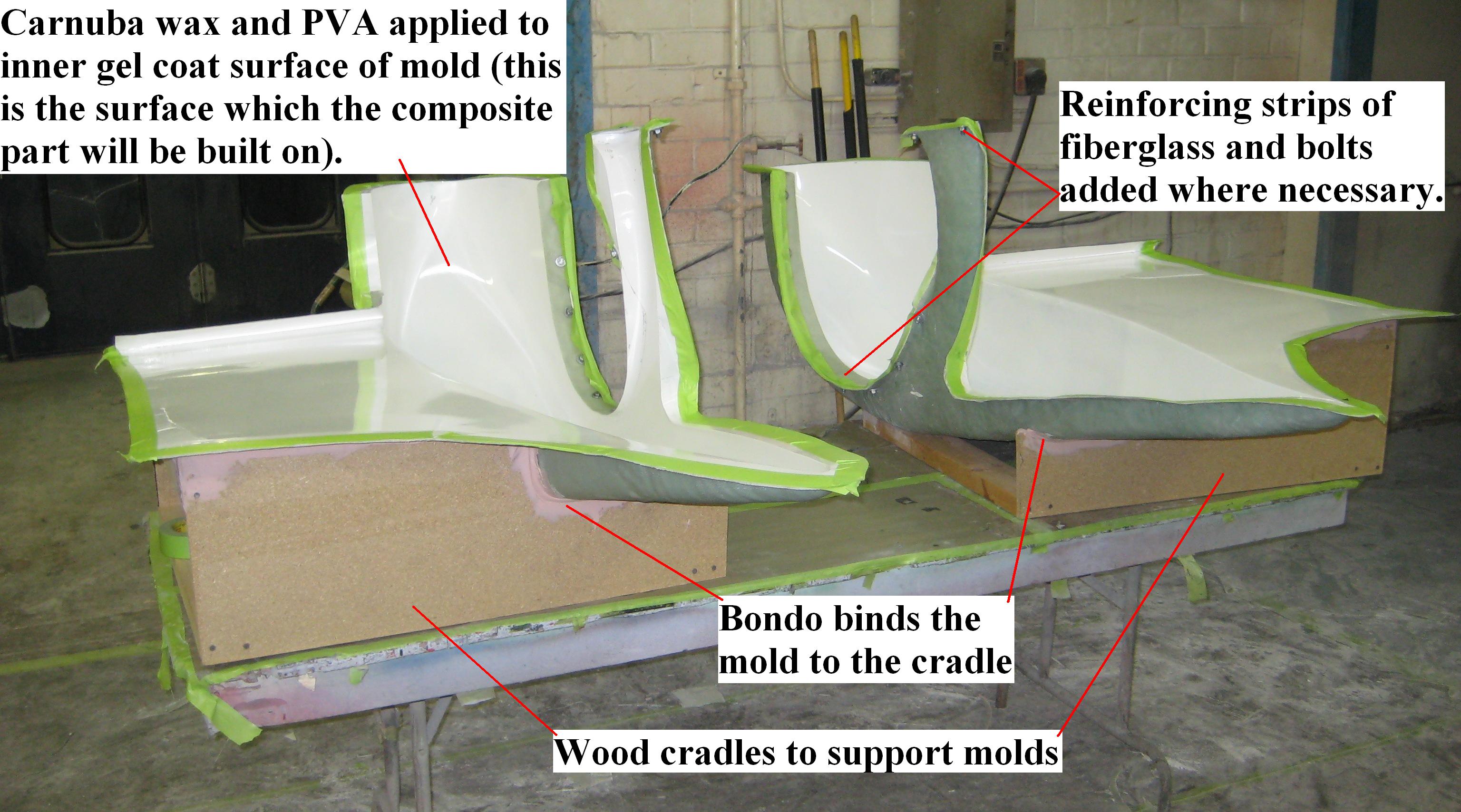 • Removing the ‘old fender pattern’ from the inside of the cured mold (as suggested in the previous picture where the ‘wood pattern’ was removed to yield the ‘completed mold.’)