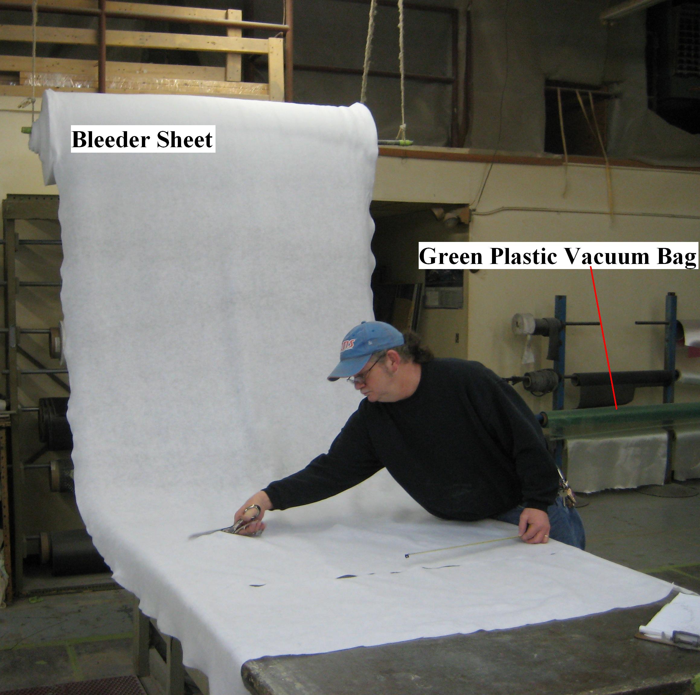 3. Bleeder sheet channels are laid over this–this allows air to travel up through the honeycomb, into the bleeder sheet channel, then out to the vacuum hose.