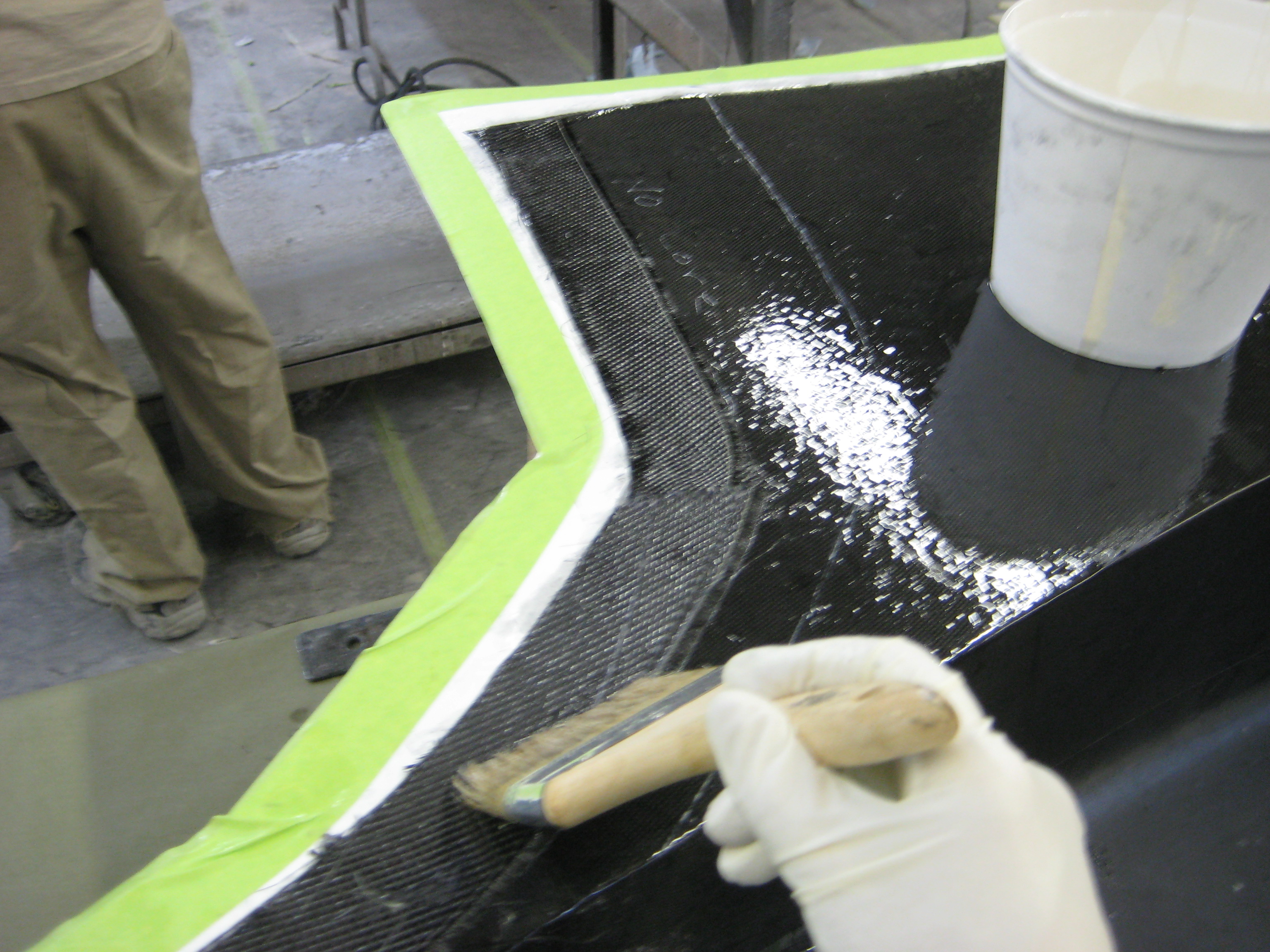 • Applying and wetting out the first layer of carbon fiber bidirectional weave