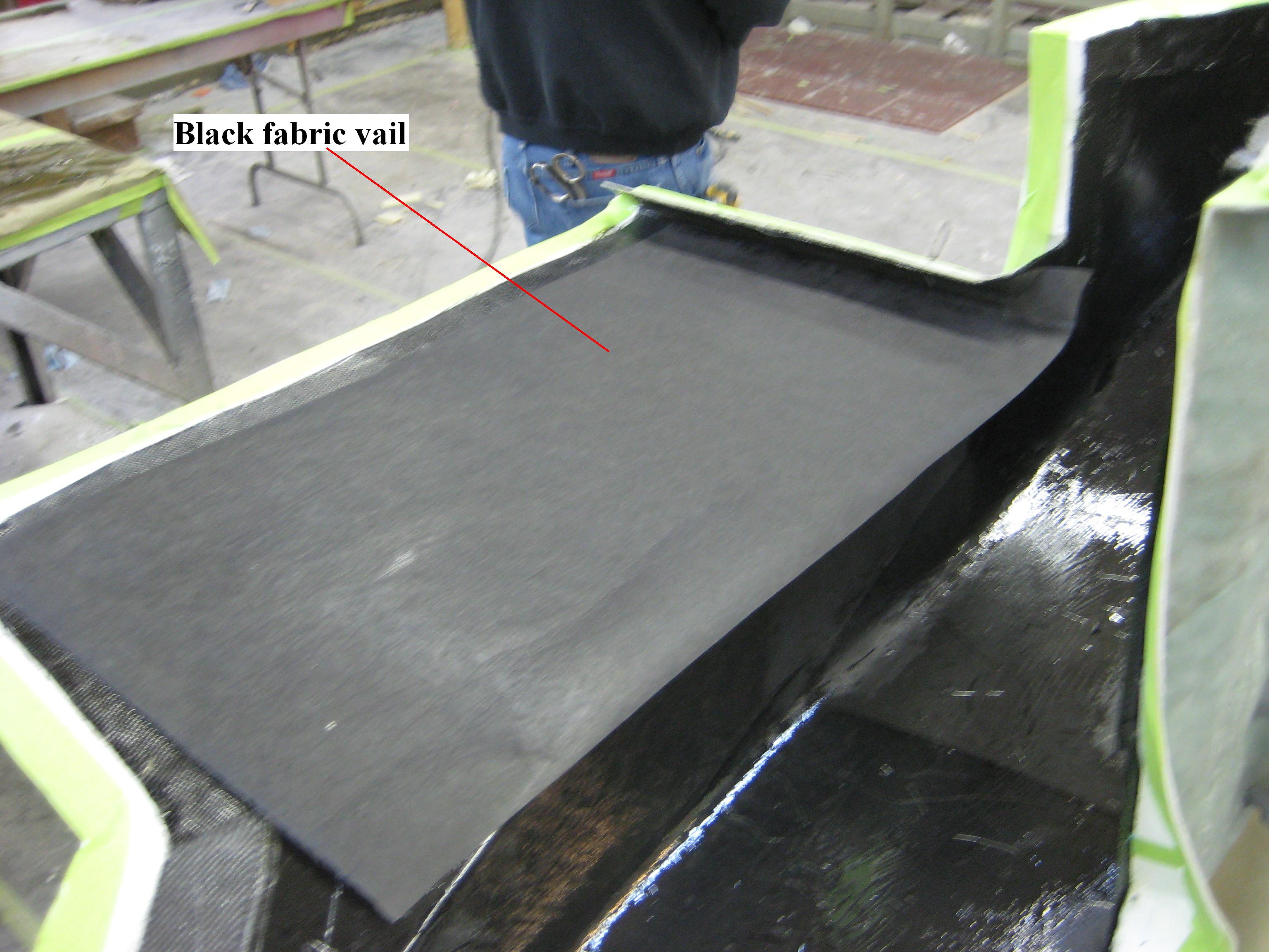 1. Apply vail to the areas where the core had been applied (I suspect that a layer of vail would have to be used–I can only imagine that, without it, the core would delaminate from the next layer which is to be applied: carbon cloth).