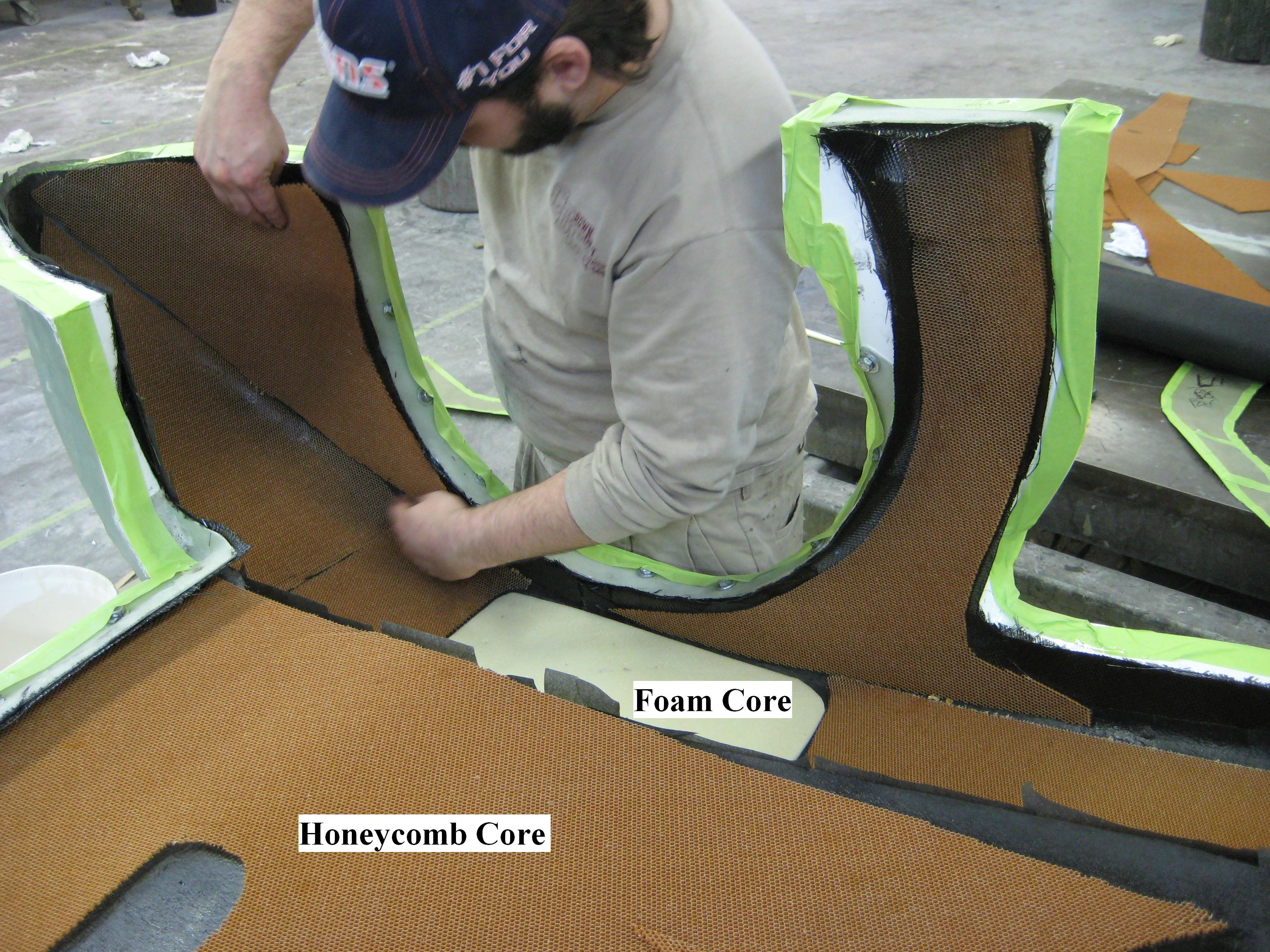 • Applying the pre-cut pieces of honeycomb and foam core into the fender