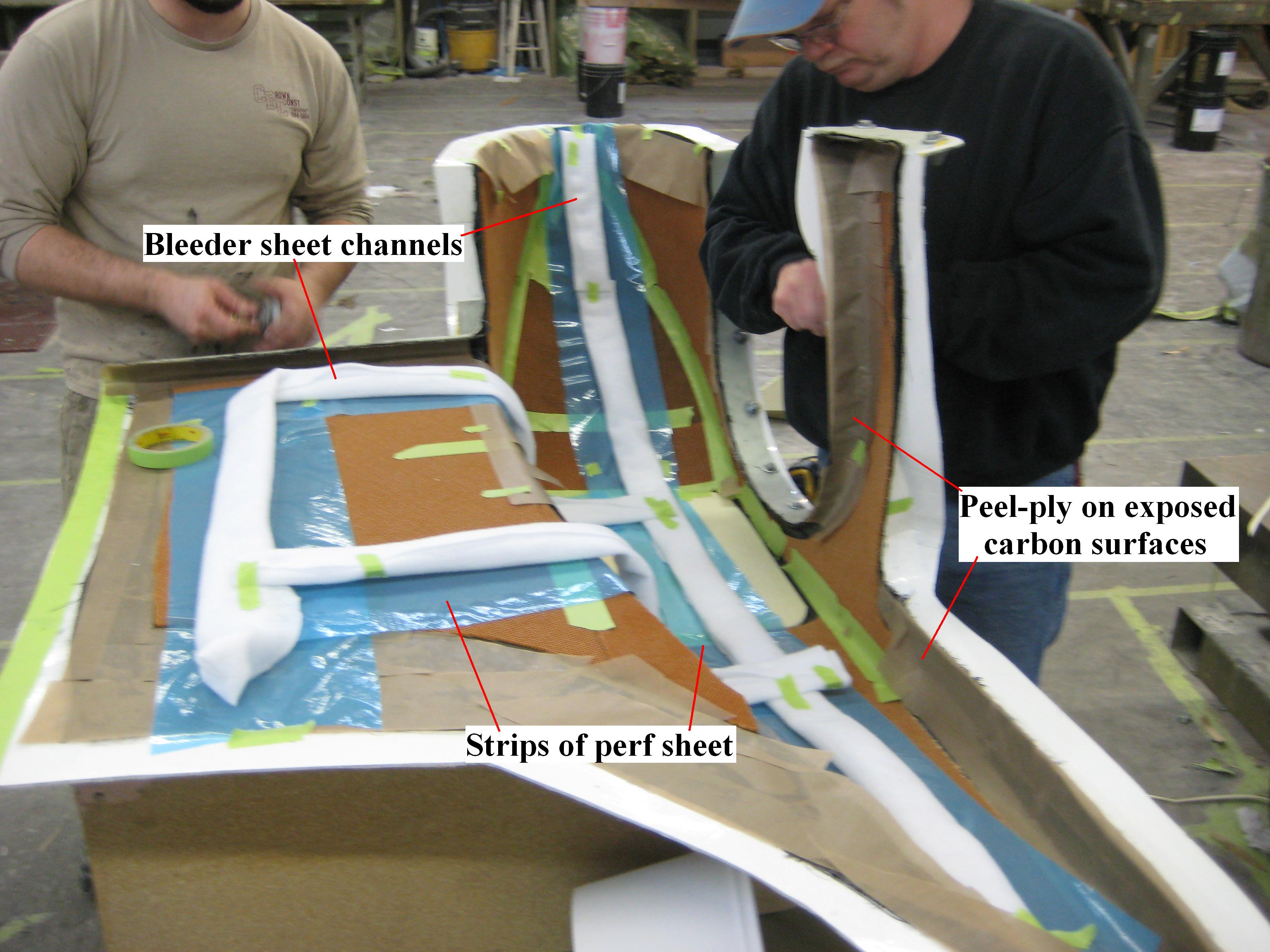1. Peel-ply on all exposed areas of wetted out carbon (or vail)–same as before.