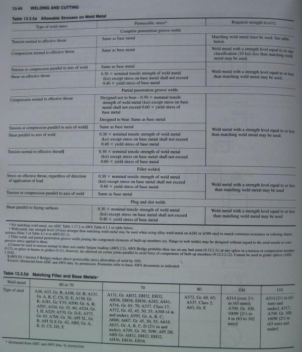 And, as mentioned earler, full penetration welds are assumed to have a “throat” which is equal to the thickness of the parts they join–i.e., the parts are a homogeneous metal.