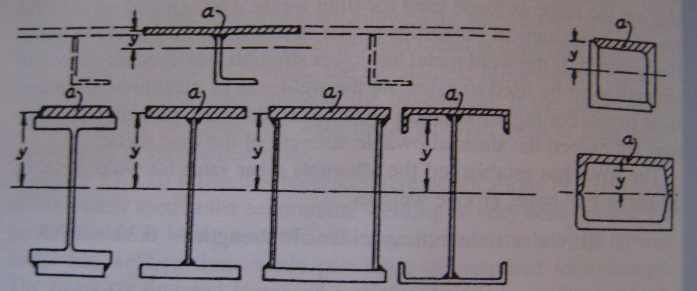 - a = area of flange held by weld (refer to shaded area ‘a’ in the beams shown in the image below) [in^2]