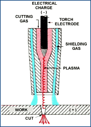 - Torch. Cutting torches (as opposed to a welding torch, note difference in the third image in the series above) have an “oxygen blast” trigger which ignites a burning reaction by changing heated steel to iron oxide which (with a lower melt temp) burns, adding heat and causes the cut to progress [3].